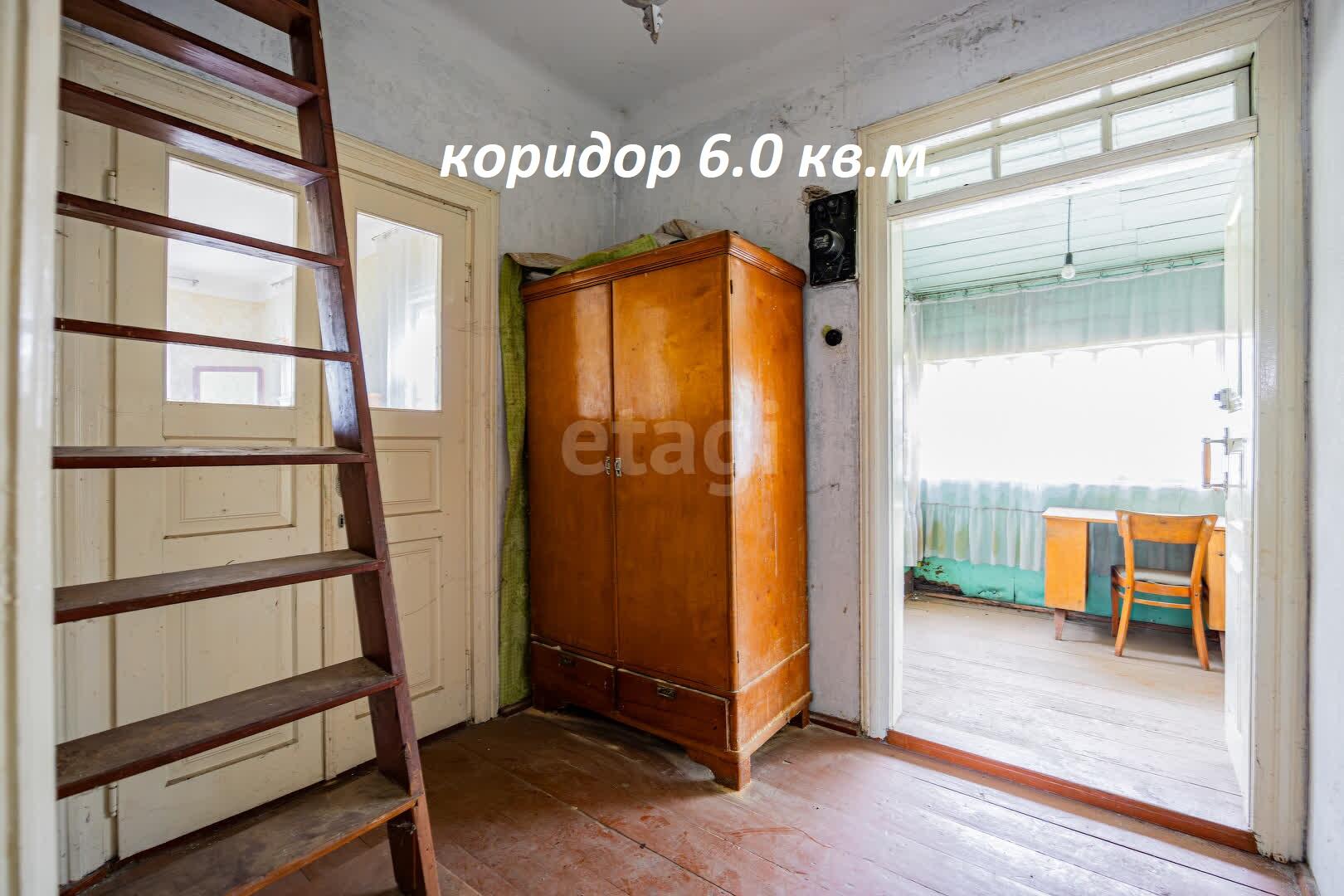 В доме два входа\выхода, окна деревянные большие, потолки 3 метра высотой.