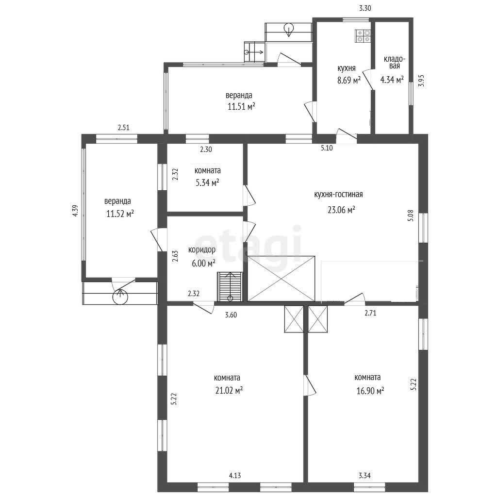 Дом 1960 года постройки, общей площадью 106,38 кв.м. Состоит из 4-х жилых просторных комнат, двух летних веранд, летней кухни с кладовой и кухни-гостинной 21,06 кв.м. Жилые комнаты: 21,06 кв.м., 21,02 кв.м., 16.9 кв.м., 5,34 кв.м.